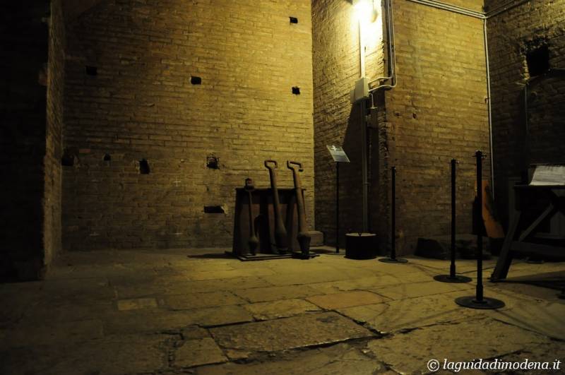 After a few more steps, the dizzy staircase climbs to the top, passing through arches in the thick walls. Almost 200 steps up to the Stanza dei Torresani (that is the ‘Room of the tower inhabitants’), once used by those who had to signal possible danger for the town. On a wall, the Modenese coat of arms is surmounted by an Estense eagle. Amongst the windows, a pair of beautiful capitals: the one for the Judges warns about the goodness of magistrates (and probably recalls when an ill-intentioned intruder penetrated the tower, in 1224); the other one, dedicated to David, represents the King with dancers. From one of the windows on the north side, on the 29 november 1938, the editor Angelo Fortunato Formiggini, inventor of the famous “Laughs’ series”, threw himself off to protest against the Jewish racial laws. A plaque on the Town Hall remembers his sacrifice.